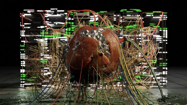 Gray Area (2025) Carbonivore, a focus exhibition of work from the Missing Object Library, a collaboration between artists Asma Kazmi and Jill Miller Taking the form of a new media and sculptural installation Carbonivore deconstructs notions that technology is immaterial; drawing attention instead to the profound physical presence and environmental consequences of our networked lives